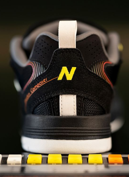 Кроссовки Tiago Lemos NM808 x Roland украшены логотипом Roland TR-808 на язычках и стельках, на внешней стороне пятки написано «Rhythm Composer», а также присутствуют фирменные красные, оранжевые и желтые детали и съемный брелок драм-машина. Цветовая гамма: черный замш с сеткой и белыми акцентами. Стоимость кроссовок составит $119.99 (USD).