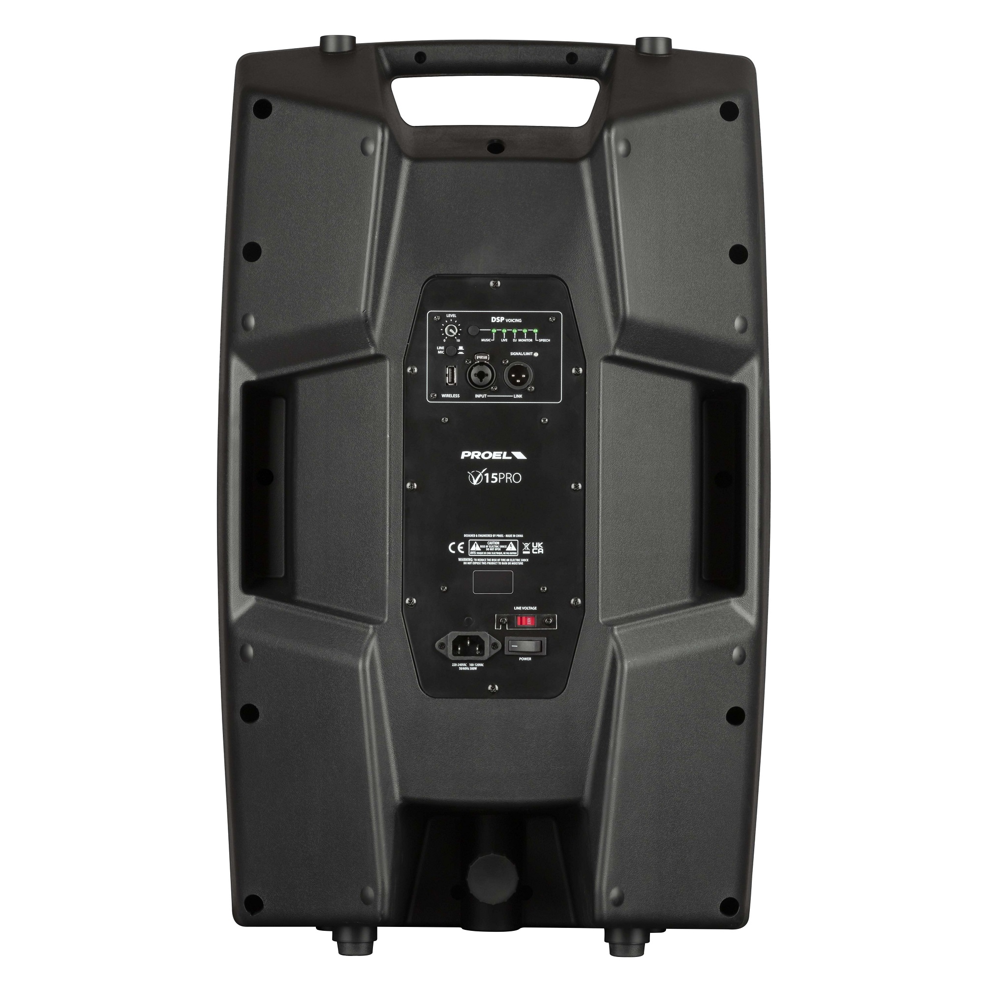 Proel V15PRO - мощная 2-полосная акустическая система с 15-дюймовым вуфером и встроенным DSP-процессором. Благодаря специально изготовленным преобразователям и усовершенствованному цифровому динамическому управлению V PRO гарантирует чистый звук даже при максимальной мощности, обеспечивая поистине выдающуюся производительность. Акустические системы V PRO, выполненные в ультрасовременном итальянском дизайне, оснащены сверхудобной верхней ручкой для легкой транспортировки. Их также можно использовать в качестве сценических мониторов, просто положив на бок. Активные системы PROEL серии V PRO созданы на основе серии V PLUS с полностью переработанным модулем усилителя, обладают профессиональным объемным звучанием мощностью 600 Вт, имеют 5 кнопок с предустановками эквалайзера. Секция предусилителя заменена цифровой платой на базе процессора ADAU1701. В каждой модели V PRO используется высококачественный усилитель класса D. Помимо этого, в системе присутствуют USB вход для подключения беспроводных радиосистем PROEL U24H или U24B, доступных в виде ручного или поясного передатчиков. Благодаря технологии подключения по каналу 2,4 ГГц эти микрофоны обеспечат передачу звука в высочайшем качестве, требуя всего лишь подключения USB-приемника в соответствующий слот на задней панели устройства. Специально разработанные высококачественные динамики, работающие с усилителем класса D, обладают превосходным звучанием, делая систему идеальным выбором для широкого спектра использования, включая вечеринки, школьные мероприятия, корпоративные и обучающие презентации, семинары, спортивные залы, свадьбы, живые выступления и даже дискотеки.