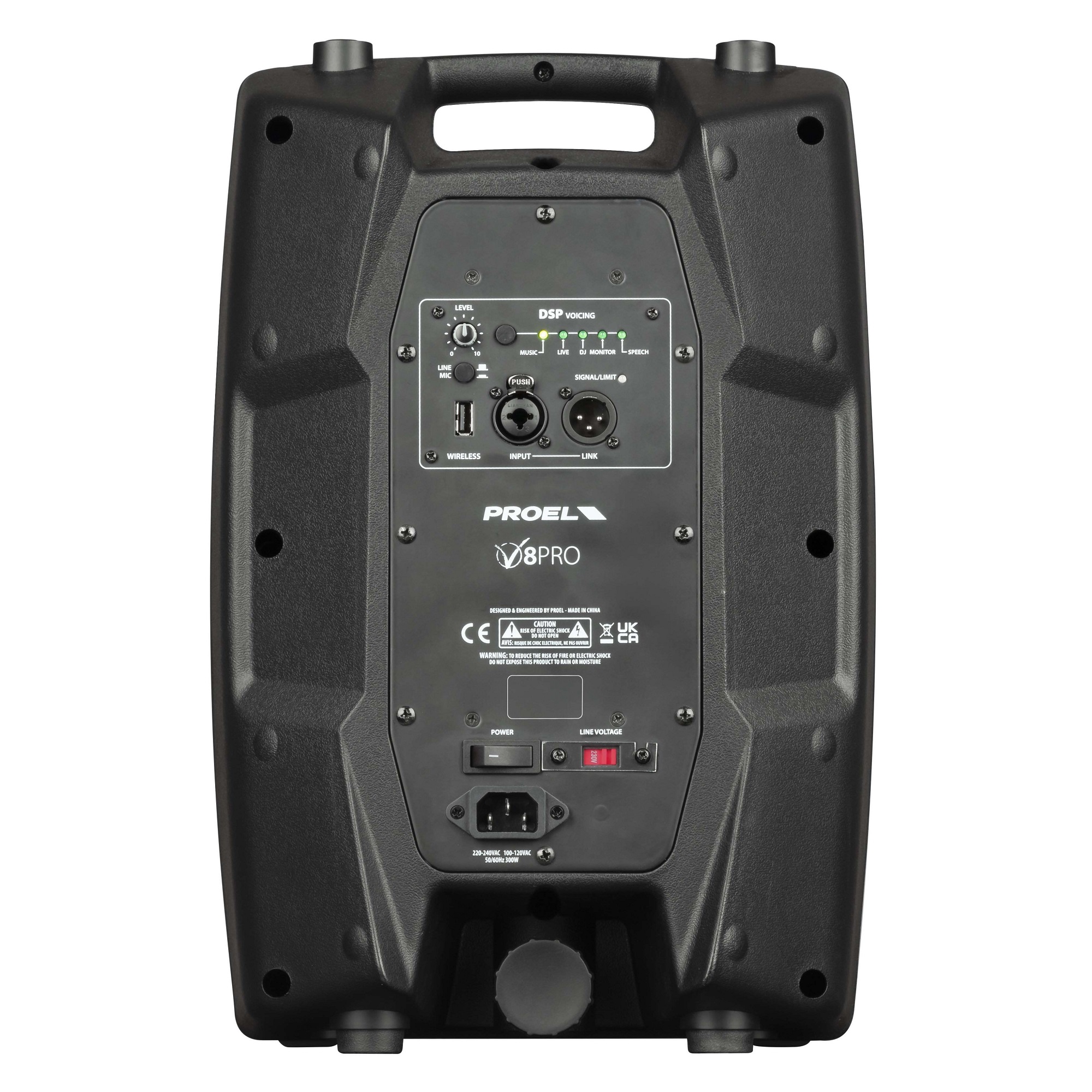 Proel V8PRO - мощная 2-полосная акустическая система с 8-дюймовым вуфером и встроенным DSP-процессором. Благодаря специально изготовленным преобразователям и усовершенствованному цифровому динамическому управлению V PRO гарантирует чистый звук даже при максимальной мощности, обеспечивая поистине выдающуюся производительность. Акустические системы V PRO, выполненные в ультрасовременном итальянском дизайне, оснащены сверхудобной верхней ручкой для легкой транспортировки. Их также можно использовать в качестве сценических мониторов, просто положив на бок. Активные системы PROEL серии V PRO созданы на основе серии V PLUS с полностью переработанным модулем усилителя, обладают профессиональным объемным звучанием мощностью 600 Вт, имеют 5 кнопок с предустановками эквалайзера. Секция предусилителя заменена цифровой платой на базе процессора ADAU1701. В каждой модели V PRO используется высококачественный усилитель класса D. Помимо этого, в системе присутствуют USB вход для подключения беспроводных радиосистем PROEL U24H или U24B, доступных в виде ручного или поясного передатчиков. Благодаря технологии подключения по каналу 2,4 ГГц эти микрофоны обеспечат передачу звука в высочайшем качестве, требуя всего лишь подключения USB-приемника в соответствующий слот на задней панели устройства. Специально разработанные высококачественные динамики, работающие с усилителем класса D, обладают превосходным звучанием, делая систему идеальным выбором для широкого спектра использования, включая вечеринки, школьные мероприятия, корпоративные и обучающие презентации, семинары, спортивные залы, свадьбы, живые выступления и даже дискотеки.