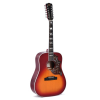 Sigma DM12-SG5 - 12-струнная акустическая гитара со звукоснимателем в корпусе формы дредноут. Топ изготовлен из массива ситхинской ели, которая имеет яркий и громкий звук. Нижняя дека, обечайки и гриф представлены красным деревом, способным сбалансировать тембр, а накладка выполнена из микарты. Нижний и верхний порожки выполнены из прочной кости. Инструмент имеет длину мензуры 24.75 дюйма. Гриф оснащен 20 ладами с разметкой белыми точками. За стабильный строй отвечают колки Sigma, отделанные хромом. Для защиты топа от царапин имеется черный пикгард. С завода установлены металлические струны D'Addario EXP16. Кроме того, гитара оснащена высококачественным звукоснимателем Sonitone.