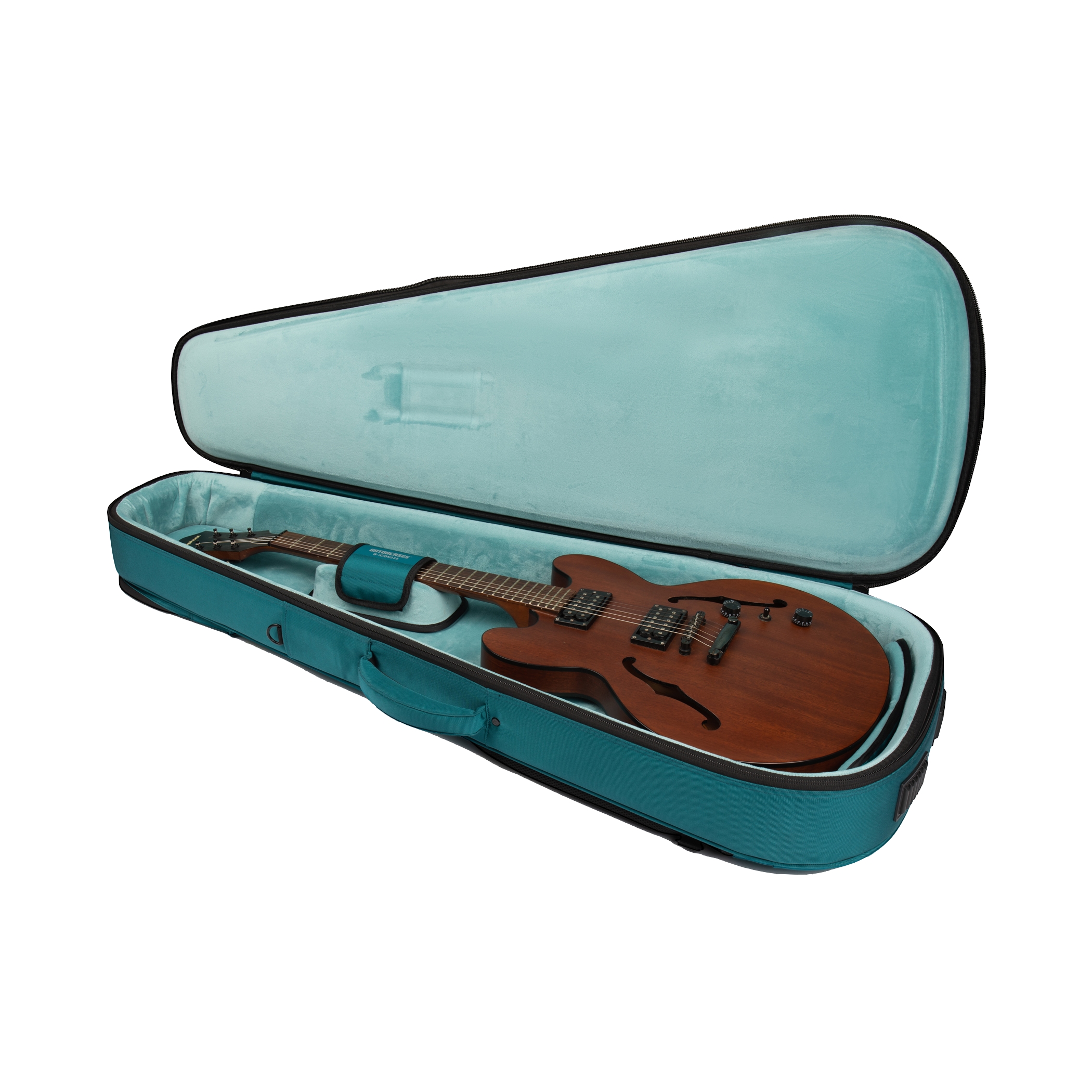 Gator G-ICON335 - плотный полужесткий чехол для электрогитары типа Gibson ES-335 и аналогов. Изготовлен из нейлона с мягкой внутренней подкладкой из красного бархата. Модель имеет прочные лямки рюкзачного типа, мягкие и эргономичные ручки. Съемный блок с фиксатором для грифа обеспечивает безопасность при транспортировке. Также имеется большой карман для аксессуаров и дополнительный чехол для защиты от дождя. Кроме того, есть резиновые бамперы сбоку и снизу для различных вариантов переноски.
