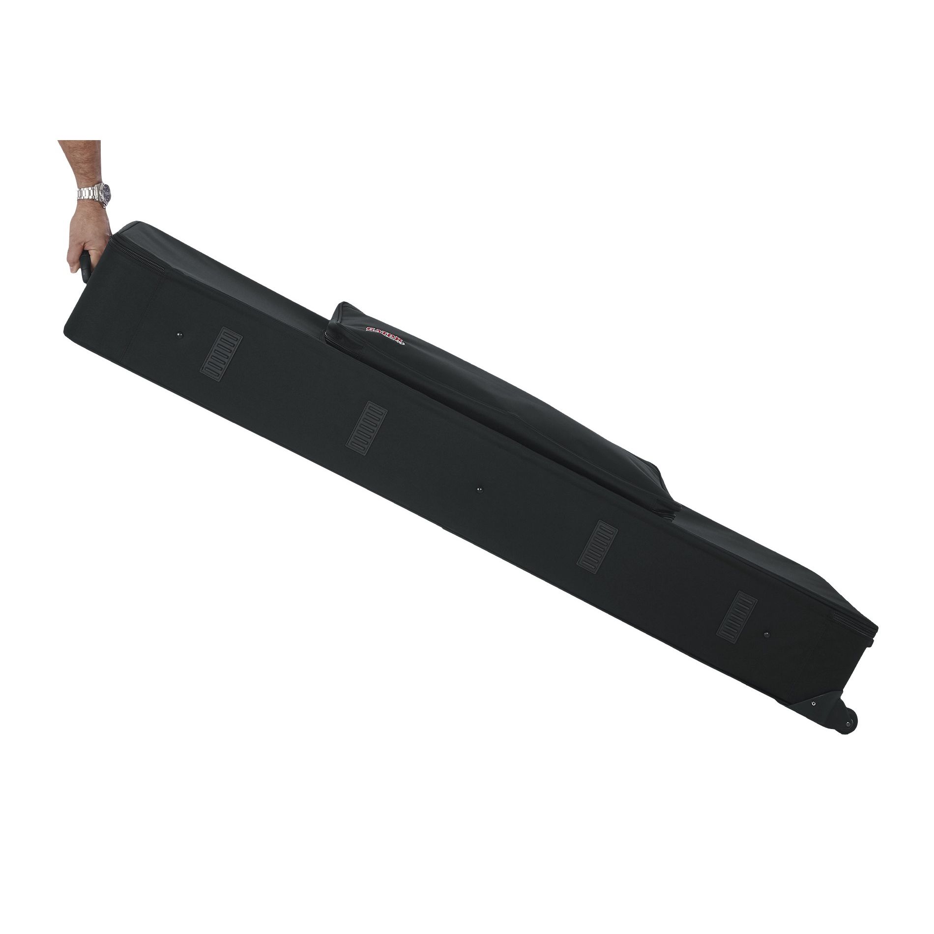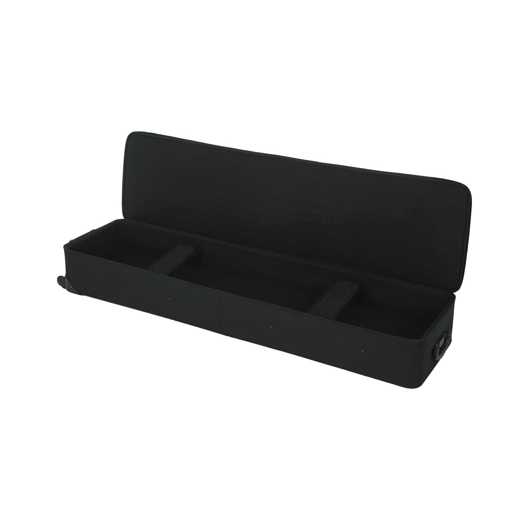 Gator GK-88 SLXL - жесткий чехол с колесами для клавишного инструмента. Прочная нейлоновая конструкция с внутренним каркасом, усиленным полиэтиленом. Внутренняя отделка: ткань и мягкий пенопласт. Полностью регулируемые ремни с мягкой подкладкой для фиксации клавиатуры во время транспортировки. Большие внешние отсеки для аксессуаров (педалей и кабелей). Встроенные колёса с выдвижной ручкой и защитными щитками.