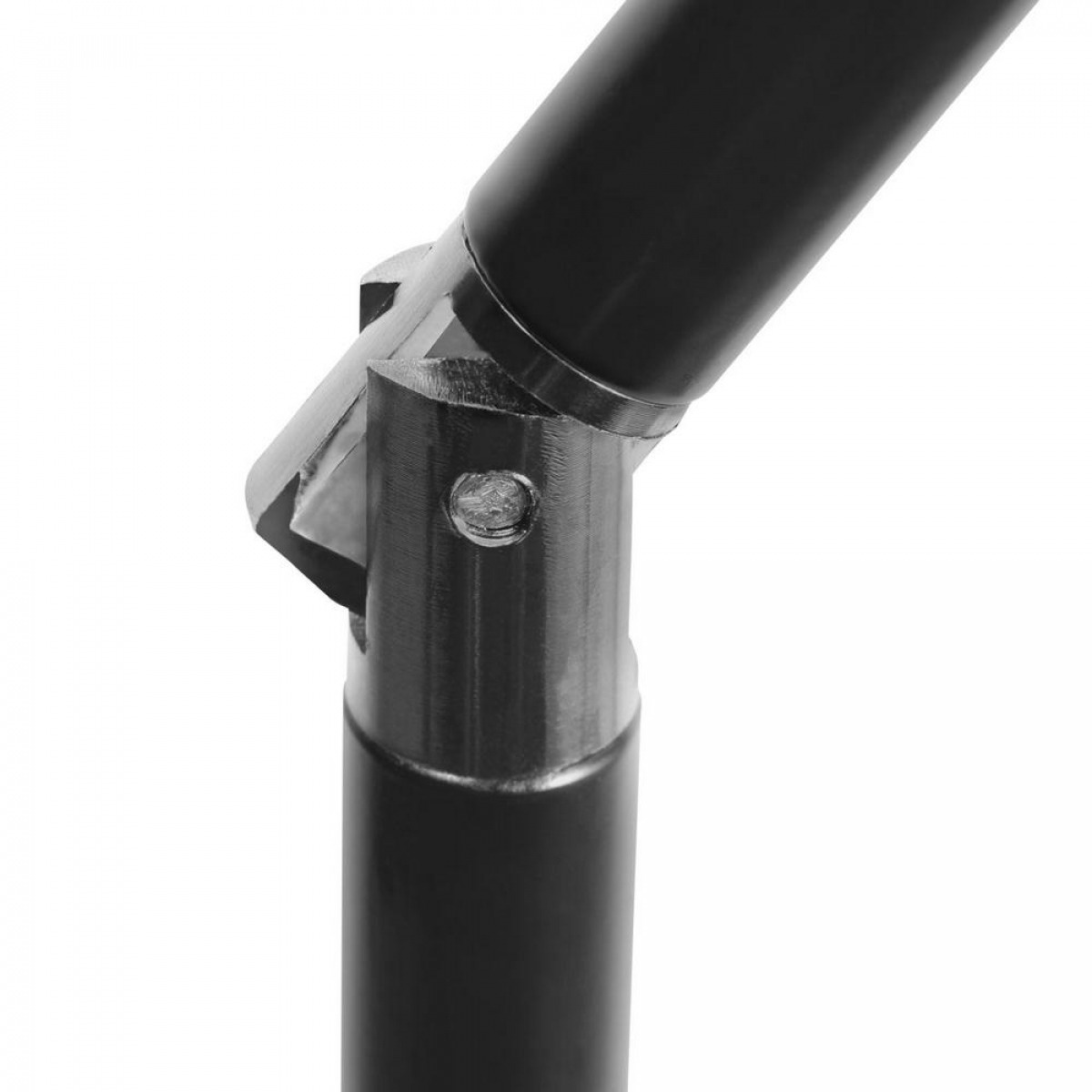 Запатентованная конструкция Rocker-Lug позволяет верхнему микрофонному валу наклоняться до 40 градусов от вертикали, поэтому нет необходимости использовать "журавль" Кроме того, верхняя стойка без труда опускается в муфту для компактного хранения / транспортировки. Низкопрофильное 10-дюймовая основание оснащено 6 резиновыми ножками для устойчивости и снижения шума