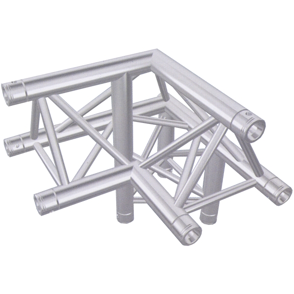 Involight TN-31 - угловой модуль для трех треугольных ферм. Модуль представляет собой отличную базу для оформления сценического помещения, для подвеса оборудования и проведения шоу или мероприятий. Трубы ферм и соединительных модулей выполнены из алюминиевого сплава с термическим упрочнением, а коннекторы и струбцины изготовлены из легированной стали. Угол составляет 90 градусов, а размеры модуля - 290 х 500 мм.
