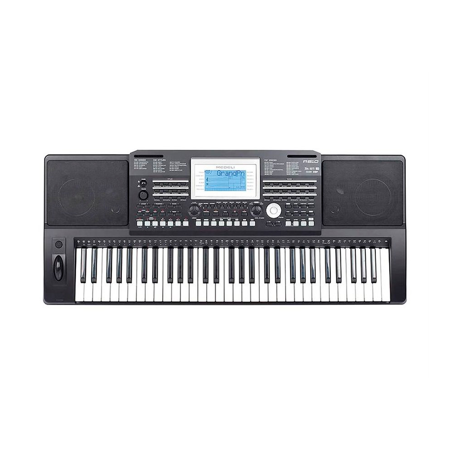 Medeli A810 - универсальный синтезатор с высококачественным звуком. Инструмент оснащен чувствительной к касанию, полноразмерной 61-клавишной клавиатурой, позволяющей добавить эмоции в произведение и сделать мелодию более выразительной. A810 оснащена новейшим звуковым процессором со 128-голосной полифонией. Medeli А810 имеет библиотеку из 737 высококачественных тембров, 10 из которых Вы сможете создать самостоятельно, а также 240 стилей, включая 5 пользовательских. При создании этого синтезатора инженеры из Medeli уделяли большое внимание качеству звучания инструмента, но все улучшения технических характеристик были бы бесполезны без качественной акустической системы. В Medeli A810 используется обновленная акустическая система: основные динамики с мощностью 25Вт и дополнительные высокочастотные динамики с мощностью 10Вт.
