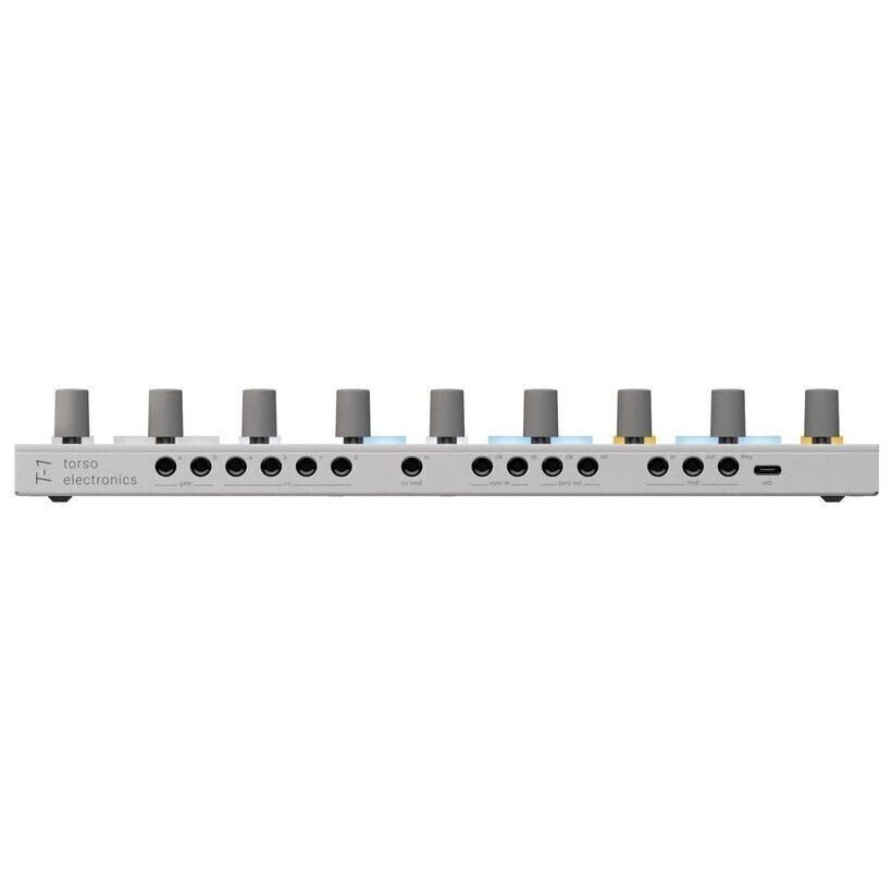 Torso Electronics T-1 - 16-трековый алгоритмический секвенсор. Каждый трек может быть настроен как для создания ударных секвенций, так и для монофонических или полифонических мелодий, с поддержкой арпеджиаторов и алгоритмов генерации ритма. Встроенные функции рандомизации и автоматизации позволяют создавать сложные музыкальные структуры с минимальными усилиями. Каждый из алгоритмов генерации паттерна гибко настраивается и модулируется на ходу, что удобно для живых выступлений. T-1 совместим с модулями Eurorack, интегрируется с Ableton по Wi-Fi, принимает и отправляет CV сигналы и MIDI через USB-C. В комплекте USB-кабель и адаптер MIDI (3.5 мм TRS на 5-pin DIN).