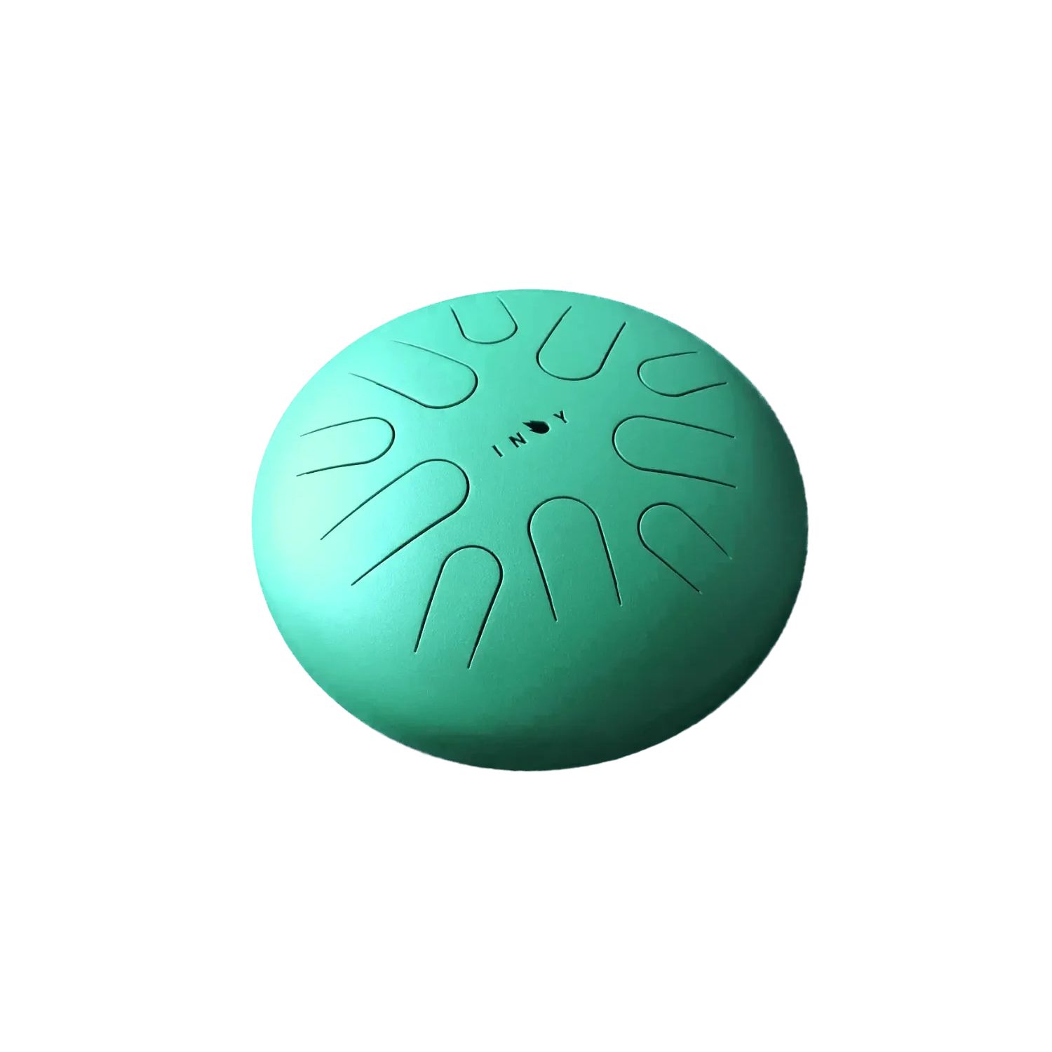Inoy 22 см Бирюзовый Муар - яркий стальной глюкофон диаметром 22 см. Глюкофон (steel drum, hang drum и др.) - популярный современный музыкальный инструмент лепесткового типа, настроенный по нотам. Он развивает чувство ритма, творческие способности, моторику, и слух. Глюкофон используют в музыкотерапии, а также для медитации, снятия стресса и гармонизации. Данная модель диаметром 22 см имеет 8 круглых лепестков. Модель настроена в строе С (до мажор). В комплект входят также 2 палочки для игры.