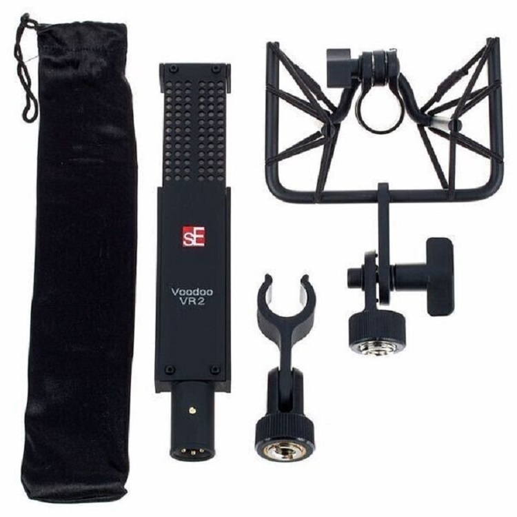 sE Electronics VR2 Voodoo - ленточный микрофон с активной электроникой и алюминиевой лентой толщиной 2,5 мкм. Имея диаграмму направленности восьмерку, оптимально подойдет для записи инструментов, в том числе скрипки, и вокала. Хотя может выдерживать и максимальное давление звука до 135 дБ. Полную частотную характеристику в пределах 20-18 000 Гц обеспечивает механическое устройство, созданное Siwei Zou, и ручная установка ленточной конструкции в капсульной комнате sE. В результате достигается детализированный, открытый и естественный звук. Подключение – через разъем XLR. Рекомендовано фантомное питание +48 В. Прилагается крепление, держатель «паук», мягкий чехол и деревянный футляр.