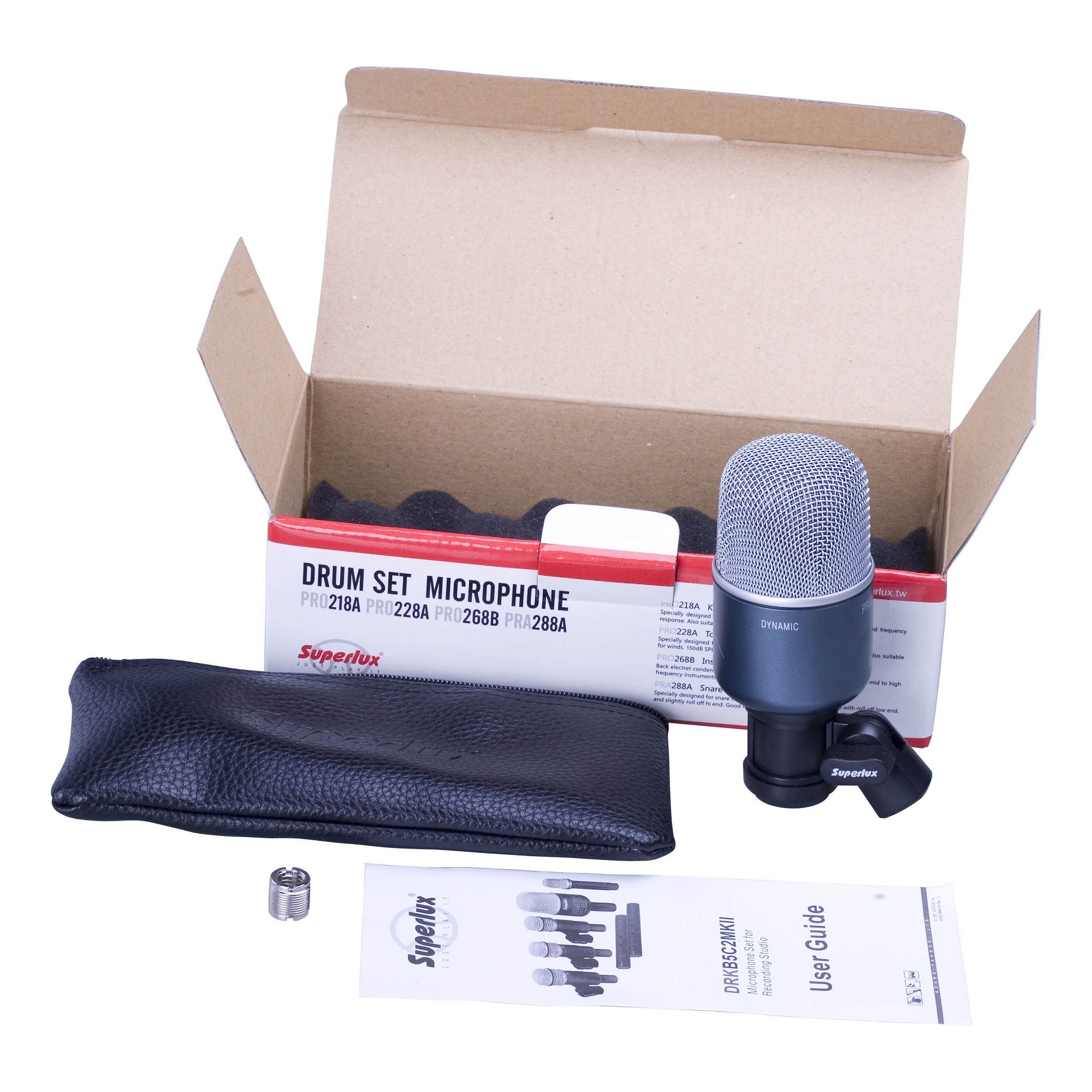 Superlux PRO218A - динамический микрофон для бочки, контрабаса и прочих низкочастотных музыкальных инструментов, суперкардиоидная направленость.