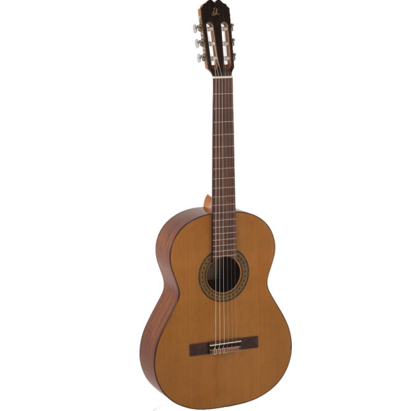 Верхняя дека - массив кедра Нижняя дека и обечайка - красное дерево Мензура - 650мм Гриф - красное дерево Накладка - палисандр Бридж - палисандр Производство - Испания