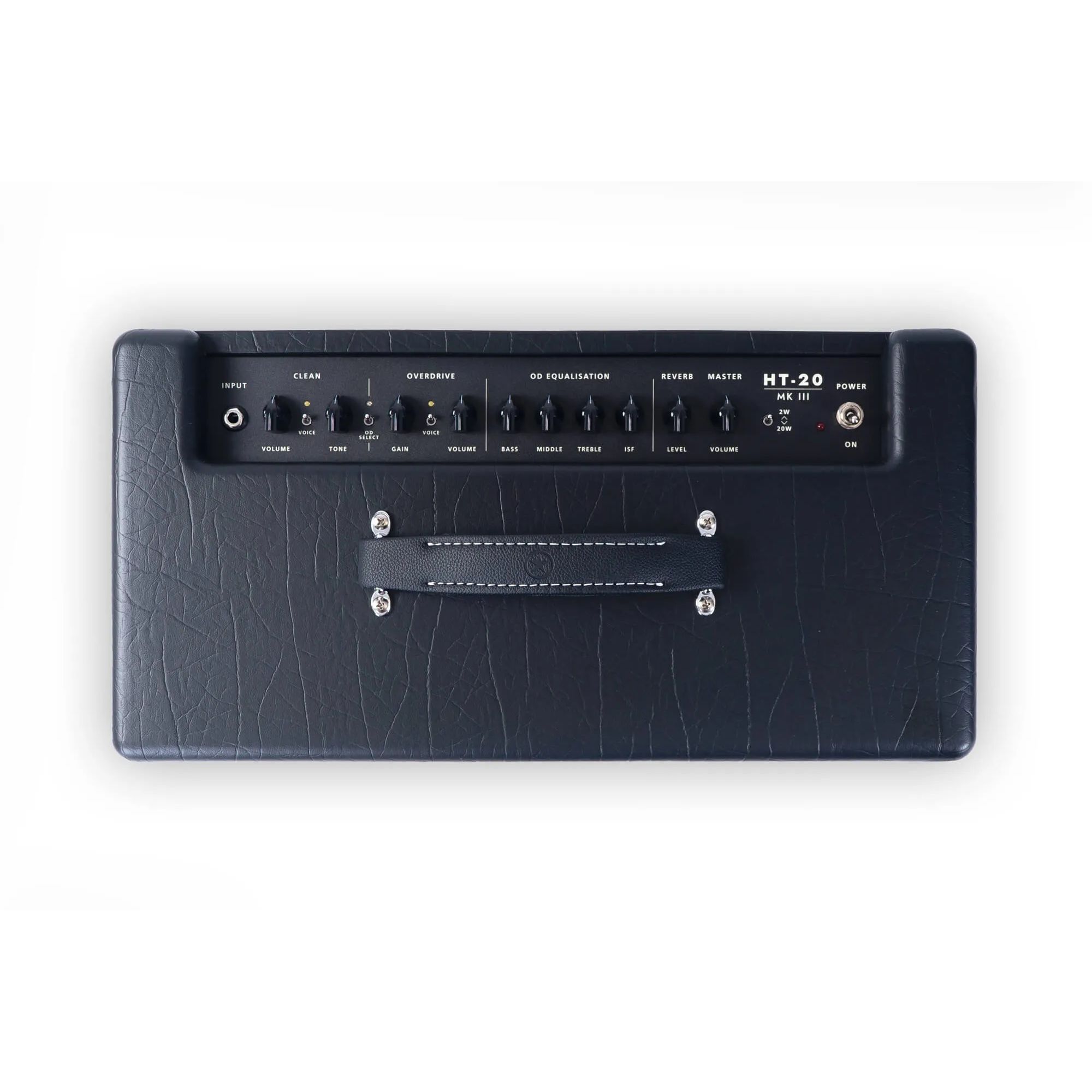 Blackstar HT-20R MK3 - ламповый гитарный комбоусилитель. Два канала усилителя – чистый и перегрузки – имеют по два переключаемых (в т.ч. с футсвитча) режима каждый. «Американский» режим чистого канала имеет более открытый звук и большее окно «чистой» громкости, в то время как «британский» режим отличается подчеркнутой серединой и более ранним переходом в брейк-ап. Канал овердрайва предлагает на выбор хай-гейн, позаимствованный у популярной серии HT-Venue и канал классического, чувствительного к громкости гитары, британского кранча - с дополнительным запасом гейна, как у тюнингованных усилителей. Мощность HT-20 может быть переключена в режим «10%», также позаимствованный у HT-Venue. От обычного понижения мощности он отличается тем, что полностью сохраняет баланс динамики и тембра. То есть, при переключении на 2Вт нет необходимости менять настройки звука, компенсируя нехватку/избыток каких-то частот или изменения перегрузке выходных ламп.