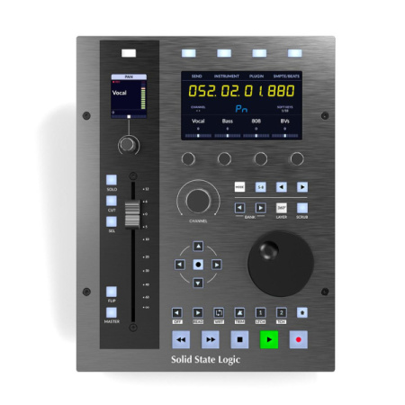 SSL UF1 – компактный контроллер для DAW. Модель обладает прочным металлическим корпусом и оснащается одним фейдером, двумя ЖК-дисплеями с высоким разрешением, мягкими резиновыми кнопками, энкодерами и специальной секцией с утяжелённым джогом. Большой многоцелевой поворотный энкодер имеет такие функции, как объединение каналов, эмуляция колёсика мыши и управление громкостью, в то время как пять меньших энкодеров обеспечивают управление микшером DAW и параметрами плагинов. Дополнительный ряд клавиш над основными элементами управления Transport можно настроить для обеспечения доступа к ключевым функциям, включая параметры loop и click, или использовать с кнопкой Shift для переключения режимов автоматизации. Отмечается, что девайс способен одновременно управлять тремя DAW через HUI или MCU и поставляется с профилями для Pro Tools, Logic, Cubase, Studio One, Ableton Live, LUNA и Pyramix. Стоит отметить, что UF1 можно комбинировать с блоками SSL UF8 и UC1, чтобы сформировать расширенную поверхность управления, а вместе с UC1 и UF1 можно использовать до четырех UF8, что позволяет настроить систему с 33 фейдерами. 4.3-дюймовый дисплей предлагает интеграцию с подключаемым плагином SSL Meter (бессрочная лицензия включена при покупке UF1), а также позволяет пользователям отображать следующий ряд измерительных инструментов: Peak, RMS, K-System, 31-band RTA, VU, PPM, Stereo Balance, Phase Correlation и Lissajous Phase Scopes. Для работы контроллера требуется установить бесплатное программное обеспечение SSL 360, поддерживающее ПК под управлением Windows 10 и новее или macOS 10.15 и выше.
