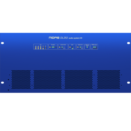 Midas DL252 - стейджбокс с 16 входами и 48 выходами с 16 микрофонными предусилителями Midas. 19-дюймовый рэковый блок ввода-вывода фиксированной конфигурации высотой 5U с 16 микрофонными/линейными входами и 48 линейными выходами, обеспечивающий легендарное качество звука Midas. Оснащен отмеченными наградами микрофонными предусилителями Midas. Благодаря ступеням аналогового усиления 2,5 дБ и трем сетевым портам AES50, обеспечивающим резервирование N+1, а также порту управления Ethernet и интерфейсу MIDI (вход, выход, сквозной), DL252 является идеальным партнером для цифровых консолей серий Midas M32 и PR.