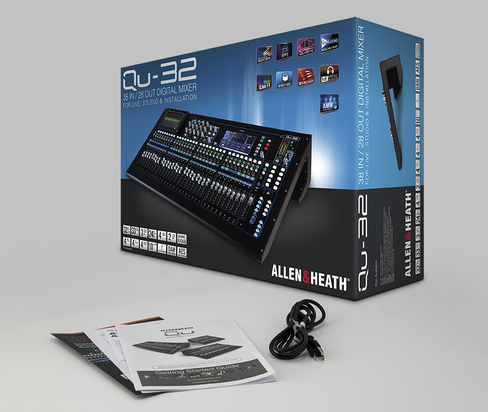Allen & Heath Qu-32C - цифровой микшерный пульт на 38 входов и 28 выходов, оснащенный USB аудио-интерфейсом 32×32. Устройство оснащено 32 микрофонными предусилителями AnalogiQ и 5-ядерным процессором ARM. В Qu-32 интегрировано множество эффектов, включая независимые 4-полосные параметрические эквалайзеры, компрессоры, дилей и реверберацию. Микшер совместим как с системой ME Personal Mixing, так и с системой dSNAKE от Allen & Heath. Qu-32 также можно использовать с приложением Qu-Pad, что позволяет использовать iPad для контроля при подключении к беспроводной сети. Для доступа к настройкам микшер оснащен 7-дюймовым дисплеем. Qu-32 имеет 33 моторизованных фейдера ALPS, 32 обеспечивают мгновенный доступ ко всем входным каналам и мастерам на 2 слоях, а выделенный мастер-фейдер повторяет выбор Mix.