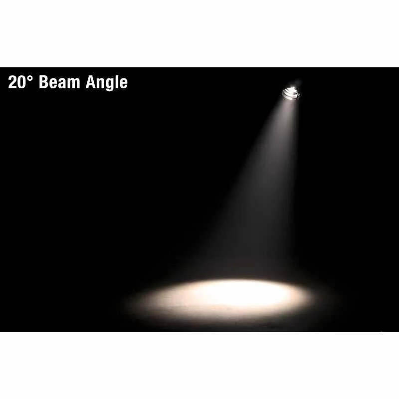 ADJ PAR Z100 3k - светодиодный прожектор теплого белого цвета. Питается от мощного теплого белого светодиода COB (Chip On Board) мощностью 100 Вт с цветовой температурой 3000 К. Его мощность сравнима с мощностью 1000 Вт галогеновой лампой Par. 5 различных вариантов угла луча, которые можно изменить вручную. Блокировка входа / выхода питания позволяет подключать питание приборов в гирляндную цепь, а 5-контактные разъемы DMX позволяют подключать данные устройств в цепочку. К преимуществам относятся низкое энергопотребление, DMX-контроль затемнения и стробоскопа. Нет необходимости в регуляторах яркости. Приспособление поставляется с гелевой рамой, в которую могут быть вставлены диффузионные фильтры для дальнейшего изменения угла луча.
