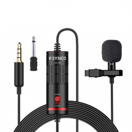 Synco Lav-S6 - всенаправленный петличный микрофон, который можно использовать с различными устройствами, включая смартфоны, DSLR камеры, диктофоны и т.п. Благодаря шестиметровому кабелю, может использоваться на большой дистанции, а универсальный 4-контактный аудиоразъем 3,5 мм позволяет подключаться к большинству камер и смартфонов. В комплект входит адаптер-переходник на 6,3 мм.