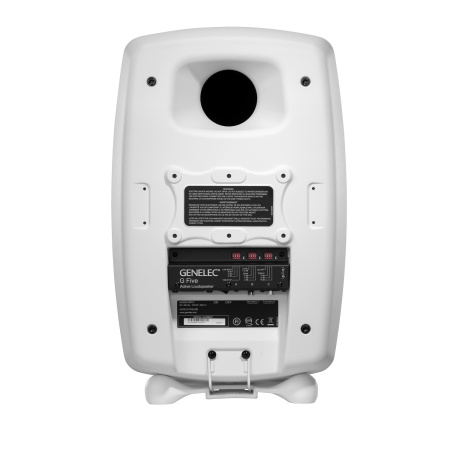 Каждый динамик в колонках подключен к собственному усилителю, сигнал на которые поступает с активного кроссовера. Genelec G Five оснащены балансным XLR и небалансным RCA-входами и имеют систему автоотключения при отсутствии сигнала от источника. Фирменная подставка Iso-Pod обеспечивает удобную установку АС на любой горизонтальной поверхности, а на задней панели колонки предусмотрено два винтовых отверстия для крепления настенного кронштейна.