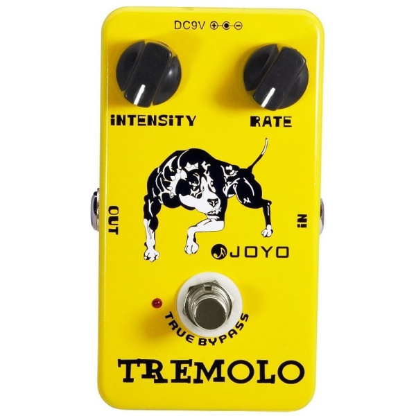 Joyo JF-09 Tremolo - педаль, которая воспроизводит тремоло классического лампового усилителя. Регуляторы Intensity и Rate позволяют настроить нужный тон и «вайб». Также контроллеры включают футсвич и индикатор состояния питания. Решение с холодным байпасом сокращает потери в сигнале. Разъемы педали представлены входом, выходом и коннектором для адаптера питания DC 9 В. Для питания также можно использовать батарейку 6F22 9 В. Корпус JF-09-Tremolo выполнен из алюминия и имеет покрытие желтого цвета.