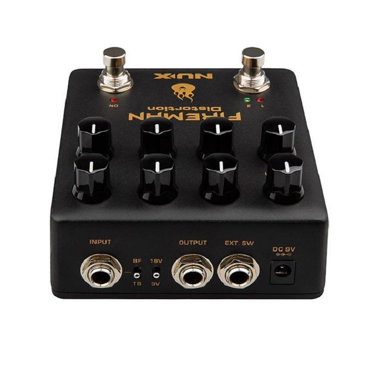 Nux NDS-5 Fireman - это двухканальная педаль дисторшн. Fireman основан на знаменитой педали дисторшн легендарного производителя усилителей. Это очень похожая на усилитель педаль дисторшена с Modern Brown Sound. Nux разработали его с двумя независимыми ручками управления VOLUME и GAIN, чтобы он подходил для ритмического и сольного использования. Fireman предлагает тумблеры True-bypass/Buffer-bypass и 9V/18V. Положение 18 В удваивает рабочее напряжение внутри, чтобы расширить динамический диапазон.