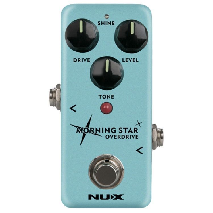 Nux NOD-3 Morning Star - педаль перегруза от компании Nux. Она схожа по звучанию с классическим перегрузом Blues Breaker, при этом привносит нечто новое в высокочастотный спектр. В обычном режиме вы получаете насыщенное, слегка перегруженное звучание, а в режиме Shine звучание становится намного ярче. Вам доступны регулировки Drive (насыщенность перегруза), Level (громкость эффекта) и Tone (яркость звучания). Также вы можете выбирать между двумя режимами байпасса: True Bypass работает максимально прозрачно и не влияет на сигнал, а Buffer Bypass усиливает сигнал, что хорошо подходит для длинных цепей эффектов. Педаль работает от блока питания (9В, минус в центре, приобретается отдельно).
