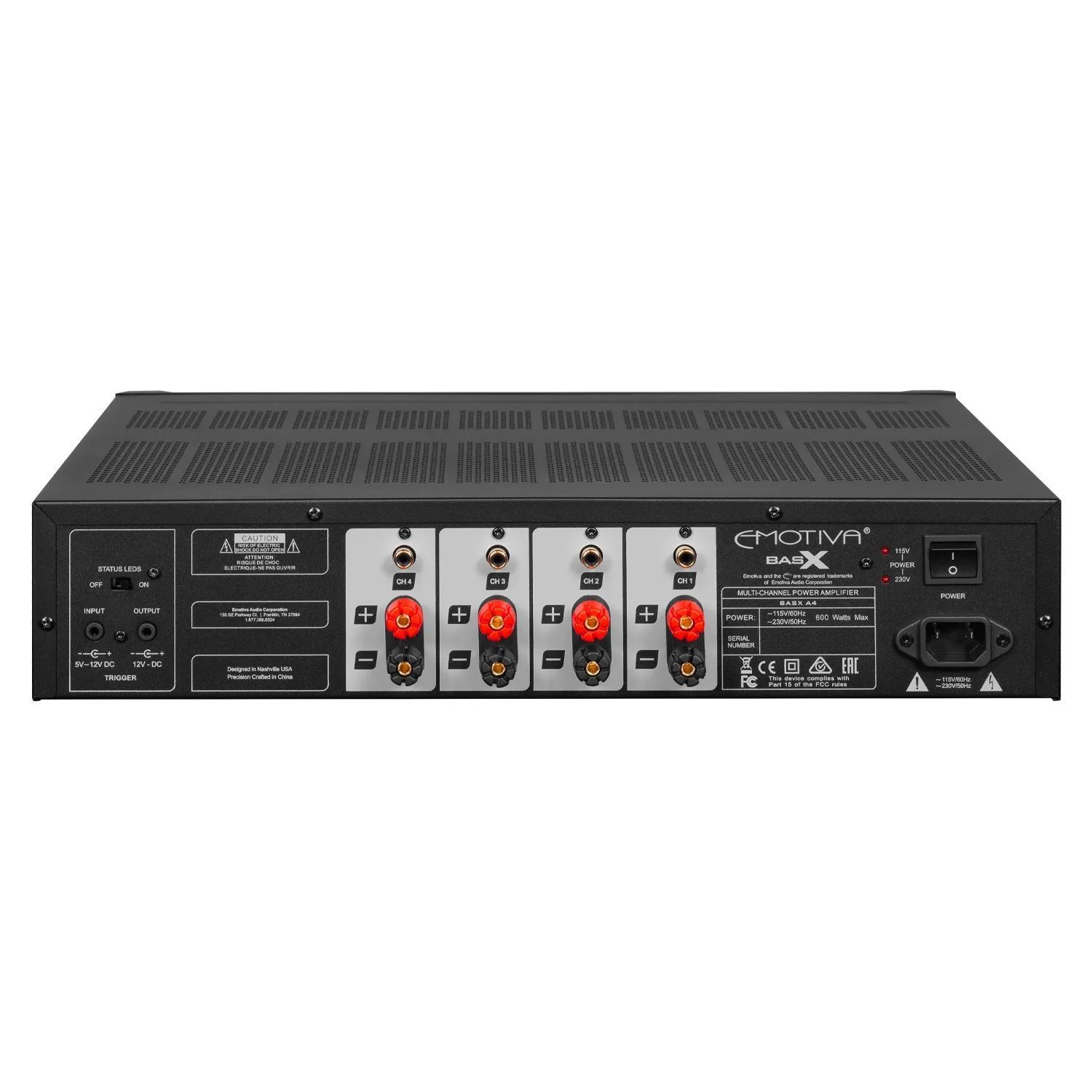 Emotiva A4 - это четырехканальный усилитель мощности, который выдает 100 Вт / канал при 8 Ом и 130 Вт / канал при 4 Ом, все каналы задействованы, с номинальным коэффициентом гармонических искажений + шум <0,02% и соотношением сигнал / шум, взвешенное по шкале А. коэффициент 115 дБ. BasX A4 оснащен мощным линейным источником питания, высококачественным усилителем класса A / B, прозрачной защитой от неисправностей, а также входом и выходом триггера. Высококачественные несимметричные входы RCA, соответствующие отраслевым стандартам, позволяют использовать BasX A4 практически с любым предусилителем или процессором, а пятиполосные клеммы для акустических систем аудиофильского уровня допускают использование банановых вилок, лопаток или оголенных проводов. Сочетание этих функций позволяет BasX A4 обеспечивать истинное аудиофильское качество и качество звука по удивительно доступной цене. BasX A4 — идеальное решение, если вам нужен высококачественный усилитель для питания ваших каналов Dolby Atmos и DTS: X height. Это также отличный выбор для усиления вашего окружающего звука, если вы создаете новую систему и уже выбрали более мощный усилитель, такой как наш XPA-3, для питания ваших фронтальных каналов или для питания двух пар зональных динамиков.