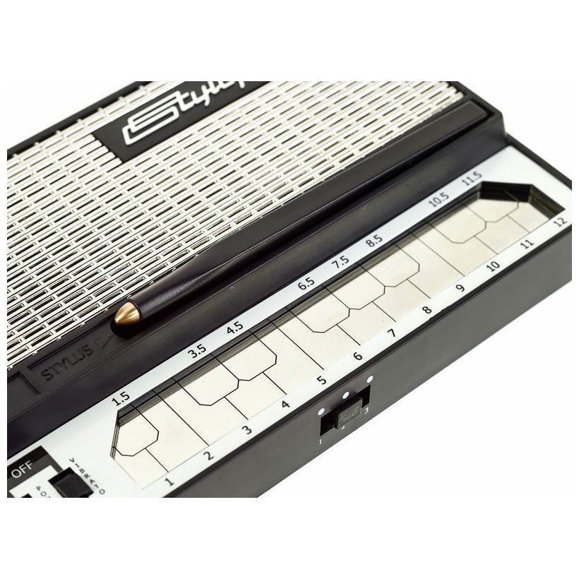 Dubreq Stylophone S1 - компактный аналоговый синтезатор с ретро-дизайном. Данная версия была выпущена в сотрудничестве с сыном создателя первого стилофона. Устройство совмещает оригинальный ретро-классический дизайн с обновленными технологиями. Самая важная особенность – это инструмент, на котором способен играть любой! Звукоизвлечение производится при помощи стилуса, который во время транспортировки может быть закреплен в корпусе. Работает от трех батареек типа AA (не идут в комплекте).