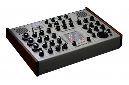 Erica Synths SYNTRX - аналоговый синтезатор, вдохновленный классической моделью EMS Synthi. Однако вместо создания ностальгического клона, SYNTRX от Erica Synths использует аналоговые схемы, которые были разработаны с нуля и разработан так, чтобы выходить далеко за пределы возможностей Synthi. Он имеет цифровую матрицу патчей и возможность сохранять до 256 патчей. На бору имеется 3 осциллятора с диапазоном в 8 октав, шумовой генератор, резонансный фильтр, кольцевой модулятор, пружинный реверб в винтажном стиле, генератор огибающей с функцией Loop и 3 усилителя. Кроме все прочего, имеется назначаемый джойстик, аудиовход с усилителем и MIDI порт. Дополняют картину деревянные боковины и встроенные динамики.