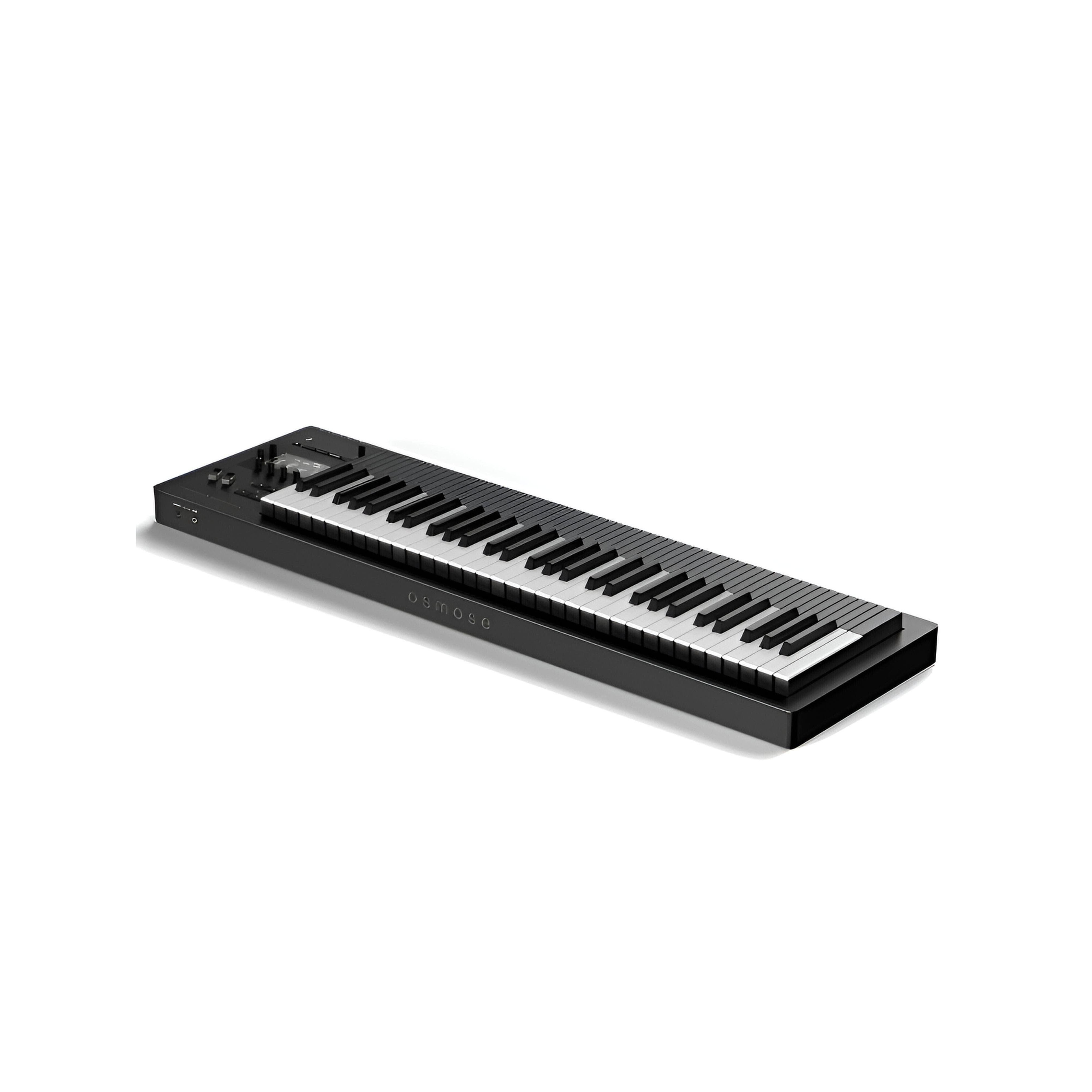 Expressive E Osmose 61 - полифонический синтезатор с 61-клавишной панелью и поддержкой MPE. Оснащён 5 программируемыми осцилляторами, 5 мультирежимными фильтрами, 5 огибающими, генераторами шума, двумя банками фильтров и 4 дилеями. Синтезатор поддерживает методы генерации звука, такие как физическое моделирование, частотная модуляция (FM), субтрактивный и аддитивный синтез. Osmose может использоваться как автономный синтезатор, MPE MIDI-контроллер и обычный MIDI-контроллер. Osmose подключается через USB-B порт. Также имеются разъёмы для подключения педальных входов, стереовыхода и выхода для наушников. Предусмотрено более 500 пресетов с настраиваемыми макросами, разделенные на 30 пользовательских плейлистов с 128 пресетами в каждом и метками избранного. Полифония синтезатора достигает 24 голоса, а управление звуком осуществляется через цветной ЖК-экран, слайдеры высоты тона и модуляции. MIDI-подключение осуществляется через DIN MIDI In, MIDI Out/Thru и USB Type B.