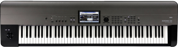 Korg Krome 88-EX - обновленная версия клавишной рабочей станции Korg Krome. Инструмент представляет богатую палитру звуков высокого класса, которую использовать в любом музыкальном стиле. Синтезатор имеет незацикленные сэмплы настоящего рояля, звуки ударных инструментов, тембры электропиано и пр. Синтезатор оснащен взвешенной 88-клавишной клавиатурой с молоточковой механикой, джойстиком вместо колес pitch/modulation, сенсорным 7" дисплеем для управления настройками, энкодером, набором кнопок и регуляторов. По сравнению с прошлым поколением, Krome EX получил новый корпус с измененным дизайном и расширенную библиотеку звуков. Для обработки встроенных инструментов синтезатор предлагает набор смоделированных винтажных усилителей, кабинетов и разнообразных эффектов. Помимо 896 клавишных пресетов, Krome EX имеет коллекцию из 2500 сэмплов ударных с 80 готовым комплектами. Кроме того, имеются двойные полифонические арпеджиаторы, возможность записи и воспроизведения партий, настраиваемые шаблоны и встроенный секвенсор. Для коммутации предусмотрены выходы для педалей, выход для наушников, L/R выходы для подключения акустических систем, MIDI In/Out, USB порт и разъем для SD карт.