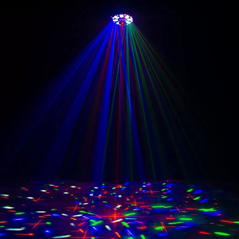 ADJ Furious Three RG - прибор световых эффектов для вечеринок, который представляет световой эффект 3-FX-IN-1, в котором используются три источника света: шесть 5-пента-светодиодов мощностью 5 Вт, восемь четырехкратных светодиодов мощностью 3 Вт, и красный и зеленый лазер, чтобы подарить пользователям эффект лунного цветка. Комбинированные эффекты /Wash/Laser доставят гостям вечеринки массу удовольствия.