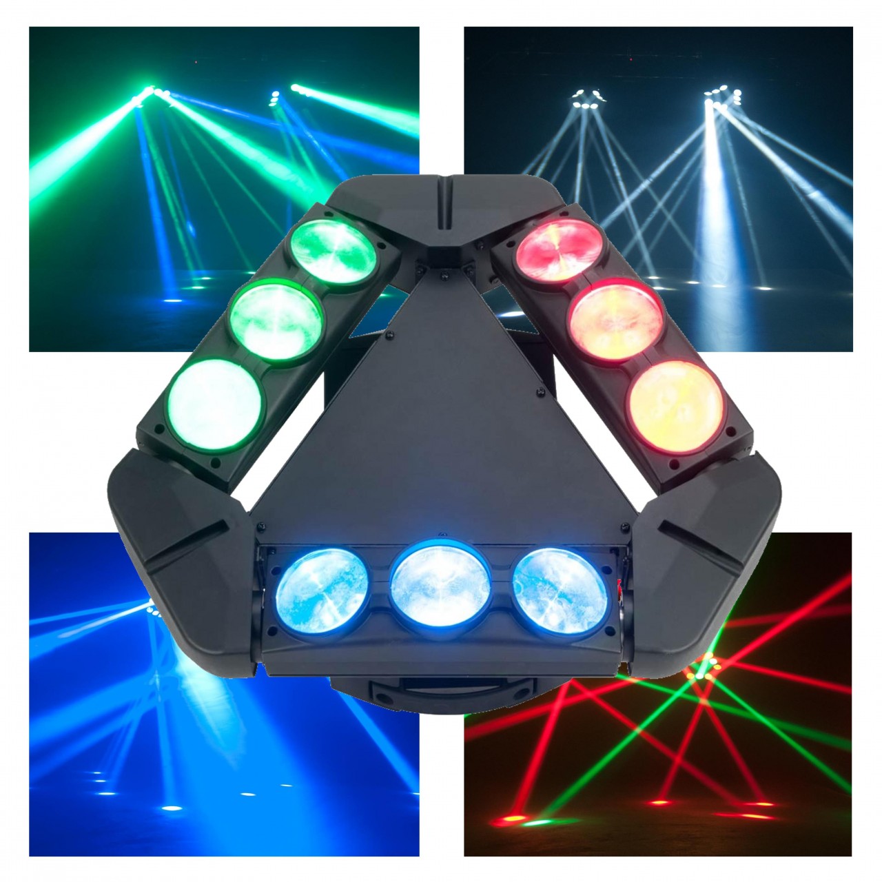 ADJ KAOS - уникальное осветительное устройство, которое создает восхитительные световые эффекты с динамичными лучами. Данная модель оснащена 9-ю яркими четырехцветными (RGBW) светодиодами CREE мощностью 10 Вт, с узким углом луча 5˚, а также 5 режимами DMX-каналов (2/6/15/23/45). Также прибор обладает несколькими режимами работы: с помощью встроенных программ, DMX-контроллера или простого в использовании ИК-пульта дистанционного управления UC. Устройства KAOS оптимально подходят для группового использования и предназначены для сцен, ночных клубов и мобильных артистов.