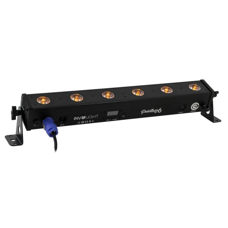 Involight Paintbar HEX6 - светодиодная RGBWA+UV панель. Панель оснащена 6 светодиодами с мультичипом RGBWA+UV мощностью по 12 Вт каждый. Угол раскрытия луча составляет 25 градусов. Панель управляется по протоколу DMX-512 - доступно 5, 6 или 10 каналов, а также режимы звуковая активация, мастер-ведомый и встроенные программы. ИК-пульт дистанционного управления входит в комплект.