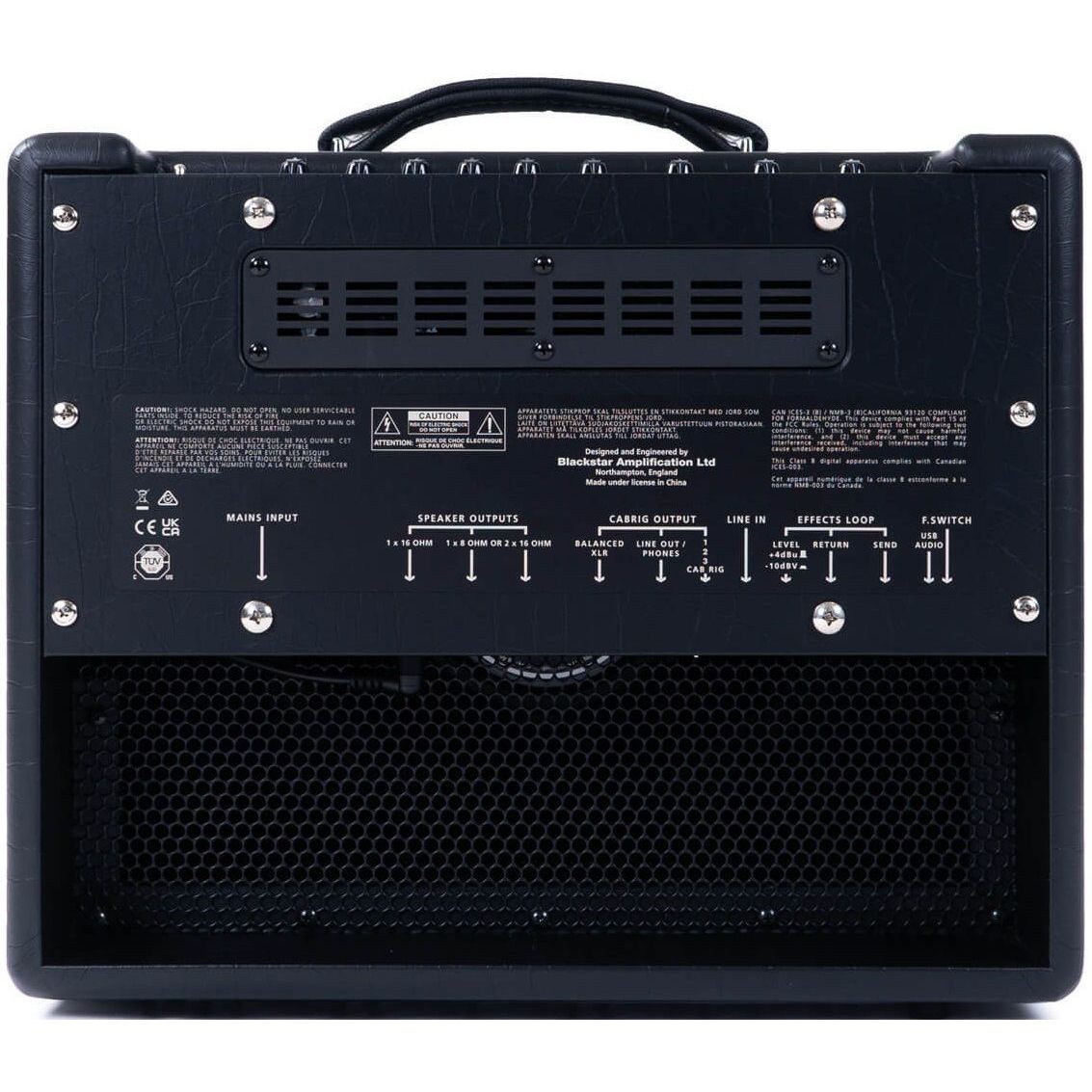 - Входы/выходы: инструментальный вход, XLR D.I. выход, выход на наушники/линейный выход, линейный вход, USB-C, спикер выходы, петля эффектов, вход для подключения педали футсвитч