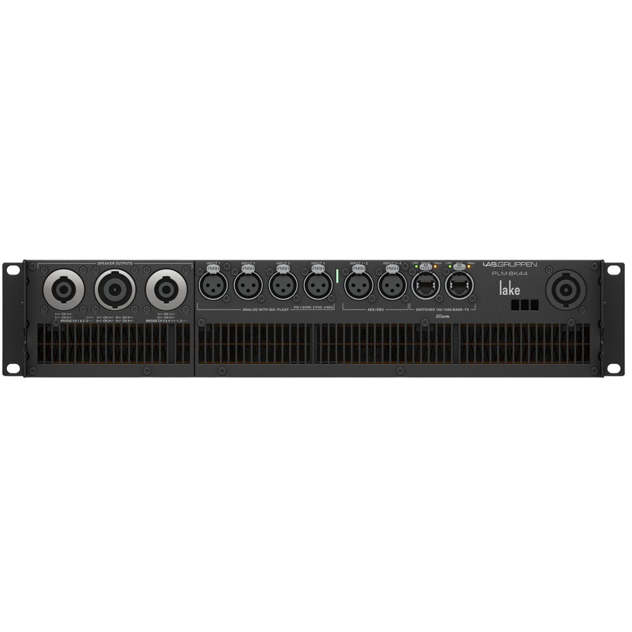 Lab.Gruppen PLM 8K44 SP - это четырехканальный туровый усилитель мощности. Одной из ключевых особенностей Lab.gruppen PLM 8K44 SP является технология Rational Power Management (RPM), которая позволяет гибко распределять доступную выходную мощность между четырьмя каналами, оптимизируя производительность под конкретные условия нагрузки. Это обеспечивает максимальное использование мощности и помогает избежать избыточной спецификации усилителя. Усилитель оснащен высокоэффективным выходным каскадом класса TD и запатентованной системой охлаждения Intercooler с тремя вентиляторами с регулируемой температурой, что гарантирует стабильную работу даже в самых требовательных условиях. Встроенный процессор Lake предлагает четыре полнофункциональных модуля Lake с широкими возможностями обработки звука, включая кроссоверы, эквалайзеры, задержки и лимитеры LimiterMax для пиковых и среднеквадратичных значений. Управление осуществляется через программное обеспечение Lake Controller. Для подключения предусмотрены разнообразные входы: четыре аналоговых XLR с изоляцией заземления Iso-Float, четыре цифровых входа AES3 (две пары) и восемь каналов Dante с поддержкой AES67 и двойным резервированием через два порта RJ-45 etherCON. Выходные подключения реализованы через разъемы Speakon NL8 и 2xNL4.